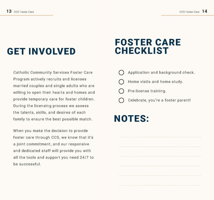 A cohesive rebrand for CCS Foster Care, from logo and website to posters and a field guide, designed to inform, inspire, and strengthen support for foster families.